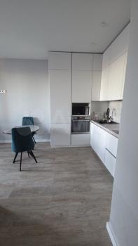 В квартире 2 спальни и большая гостиная- кухня площадью 35 метров с раскладным диваном.