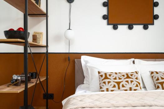 Интерьер построен на сочетании современного минимализма и аутентичной винтажной мебели 1960-х годов, что создает атмосферу, придаёт пространству особый характер, уют и ощущение продуманного, цельного стиля. Здесь сразу чувствуется дом — не типовая аренда, а действительно красивое пространство для комфортной жизни.