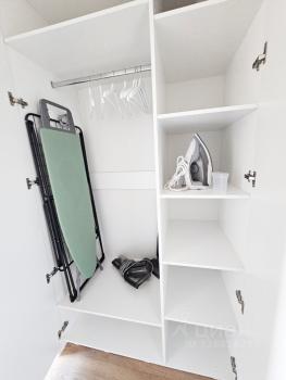 -Квартира после ремонта. Квартира укомплектована всей необходимой мебелью и техникой: кондиционер, холодильник, посудомойка , варочная поверхность, свч печь, стиральная машина, чайник, ТВ, интернет .Полностью готова к заселению. Удобная планировка включает кухню-гостиную и две изолированные комнаты. В одной комнате сделана отдельная гардеробная, в другой отдельный шкаф. В прихожей большой шкаф для верхней одежды.