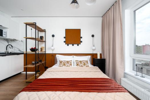 - Спальня. Двухместная кровать с отличным матрасом, вместительный шкаф, кондиционер и зона для макияжа;