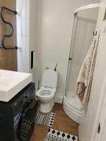 санузел - совмещённый, мебель - кухня, хранение одежды, спальные места, холодильник, плита, стиральная машина.