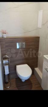 - большой совмещенный санузел с туалетом и ванной, где расположена большая стиральная машинка и туалетный гарнитур и встроенный ящик для белья.