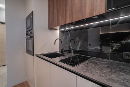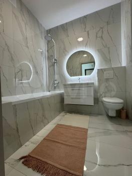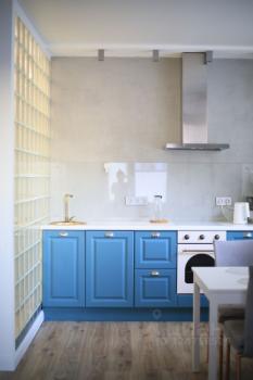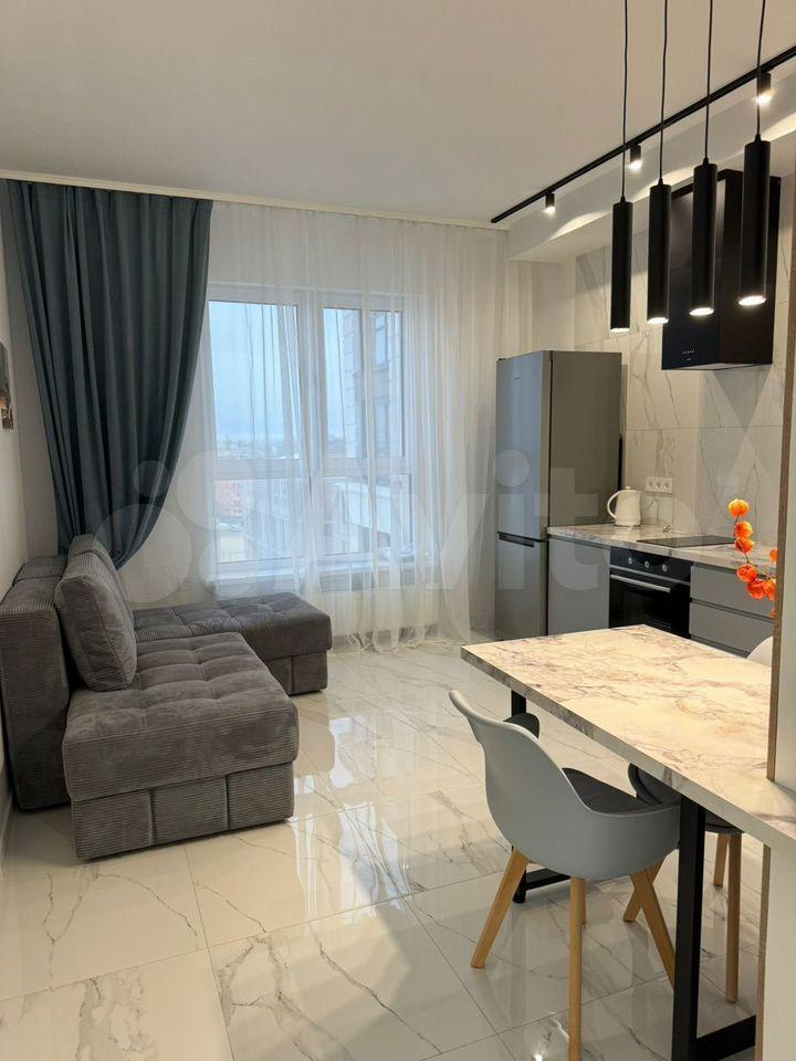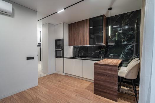 Стильная светлая евродвушка в новом доме, 44 кв.м, 1 этаж, оснащена всей необходимой мебелью + техникой (телевизор, стиралка, холодильник, микроволновка, плита, духовка, посудомойка).