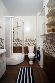 Санузел совмещённый, оформлен в современном стиле с качественной сантехникой и стиральной машиной. Есть кабельное ТВ, WiFi. Парковка за шлагбаумом во дворе по договоренности.