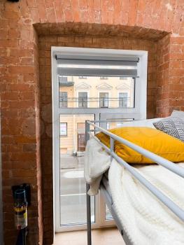 для комфортного сна, ВМЕСТО отдельно стоящего основания для матраса, куплена и размещена новая кровать с новым матрасом со спальным местом 160*200 см. Фотографии кровати прикреплены отдельно. В комнате есть диван-книжка терракотово-желтого цвета с местами хранения. Также есть корпусная мебель. В комнате есть простор для создания уютной зоны отдыха или рабочего места, в целом вы можете что-то с согласованием менять для своего комфорта. За окном отсутствует вид "окна в окна", есть свободная перспектива для глаз с красотами неба и солнца.