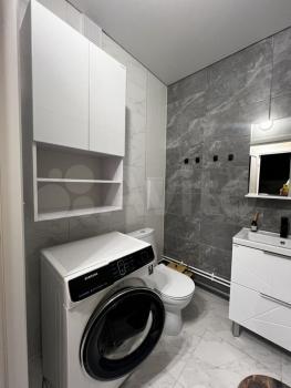 Санузел оснащен стиральной машиной (на антивибрационных подставках) , унитаз , гигиенический душ , раковина , места хранения , душевая кабина с гидромассажем , радио и возможностью подключения телефона ! Фен , сушилка напольная . В санузле теплый пол !