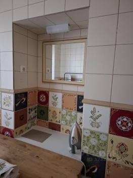 Площадь квартиры 32 кв., жилая 26 кв,+ застекленный балкон 5 кв.м. с линолеумом. Есть оборудованная кухонная зона с электроплитой и обеденной зоной, имеется холодильник.