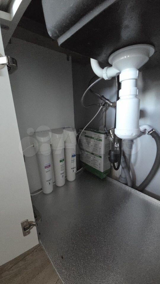 кровать с подъёмным механизмом ( дополнительное место для хранения вещей), шкаф, тумбочки, письменный стол, кухонный гарнитур, диван с ортопедическим основанием, стол-книжка, бытовая техника: холодильник, варочная панель, духовой шкаф и посудомойка, стиральная машина. Установлен фильтр на воду на кухне для питьевой воды.