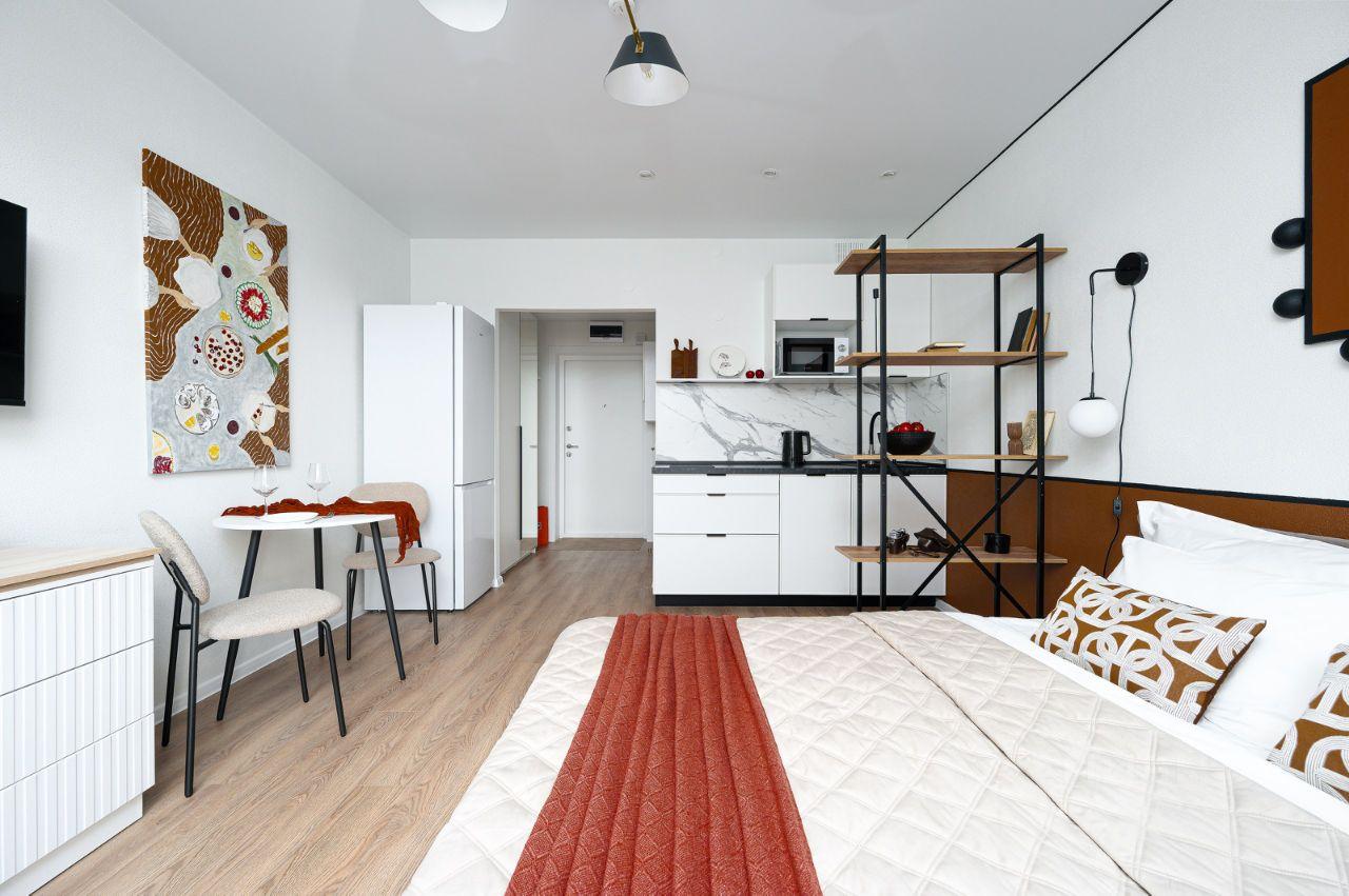 Сдаётся уютная однокомнатная квартира площадью 32,1 кв. метров на 3 этаже в новом 12-этажном доме ЖК "Сенат" от СЭТЛ. Дом расположен в 10 минутах пешком от Ж/Д станции Ленинский проспект. Дом построен в 2025 году, произведена качественная отделка квартиры с использованием современных материалов. В квартире высота потолков составляет 2,7 метра, что за счёт парящих натяжных потолков создаёт ощущение пространства и комфорта. В квартире установлен видеодомофон с функцией умного дома. Внутренний, закрытый от машин, просторный двор со множеством детских площадок, оборудованных современными игровыми комплексами и своей велодорожкой подарит подрастающему поколению много счастливых часов, а родителям чувство безопасности. Квартира полностью меблирована, есть мебель как на кухне, так и в комнате. Кухня площадью 10,5 кв метров оснащена всей необходимой техникой: холодильником, посудомоечной машиной, варочной панелью и духовым шкафом. Имеется СВЧ печь. Ванная комната оборудована стиральной машиной, санузел совмещённый. Окна выходят на северо-восточную сторону, что наполняет квартиру утренними солнечными лучами.