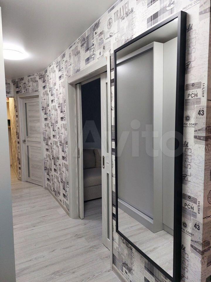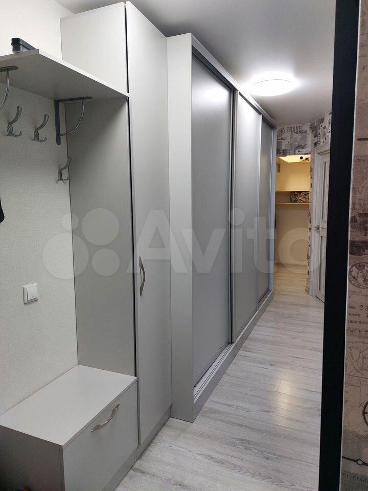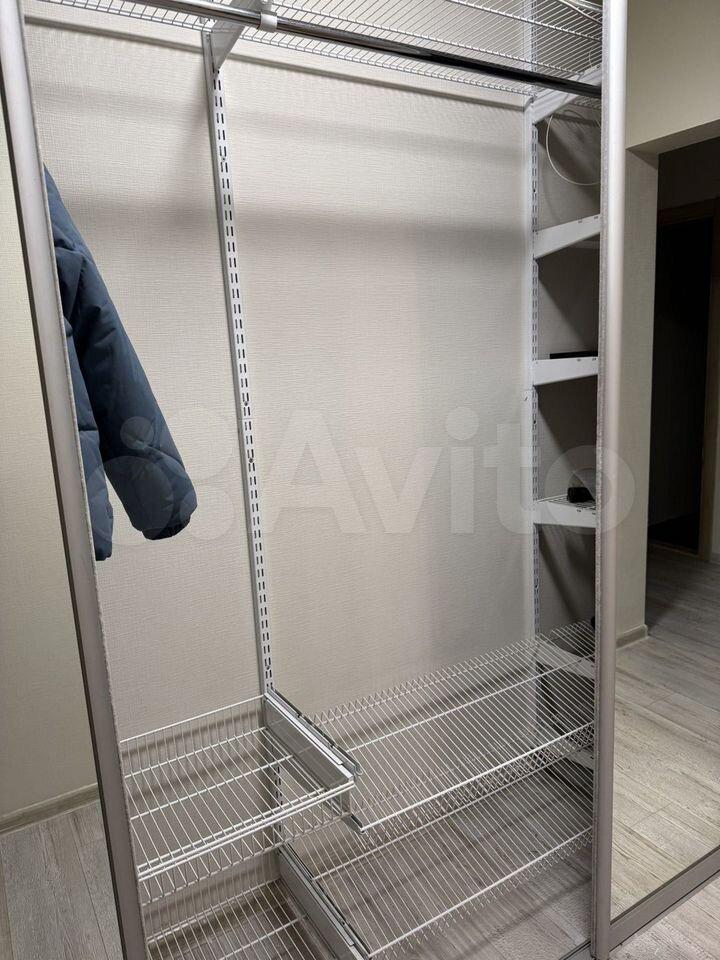 В прихожей большое зеркало, гардеробная система.