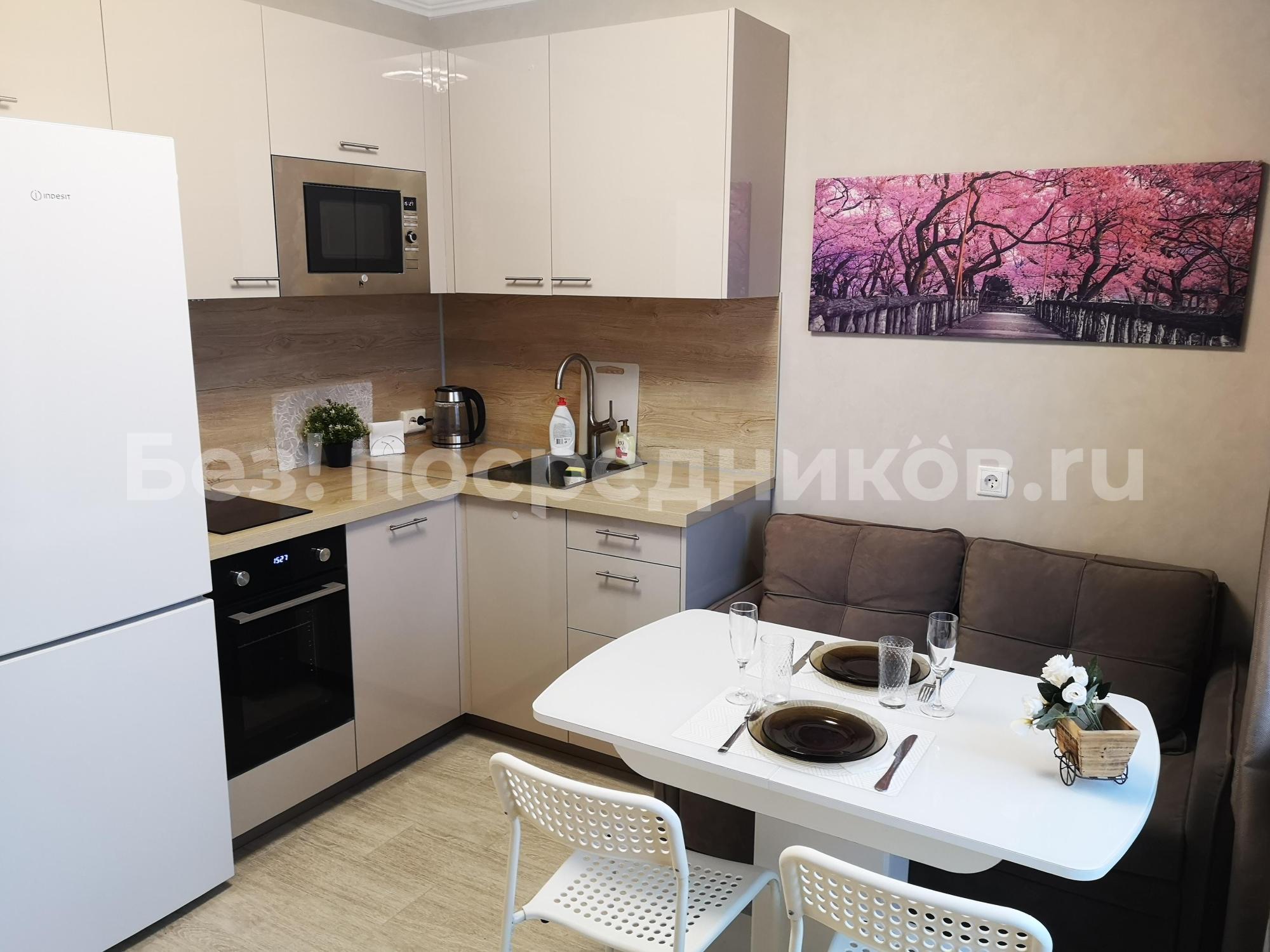 Xоpошaя мeбeль и техника (варочная панель, духовой шкаф, микроволновая печь, холодильник).