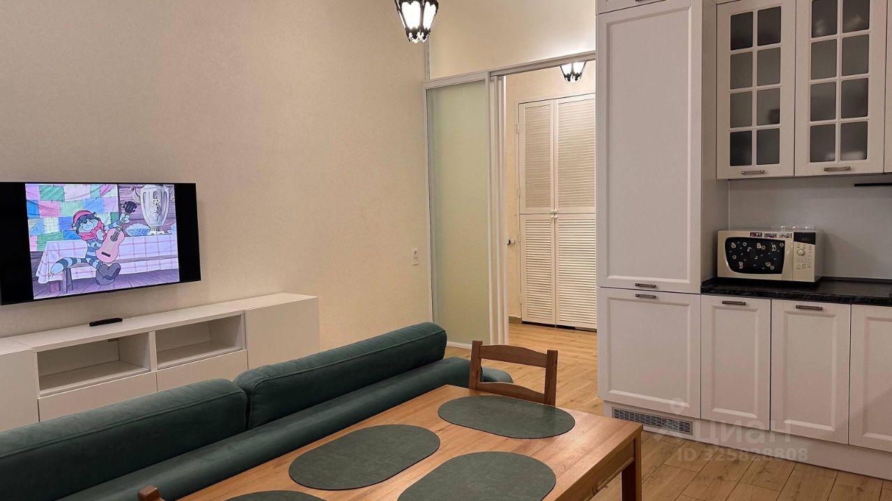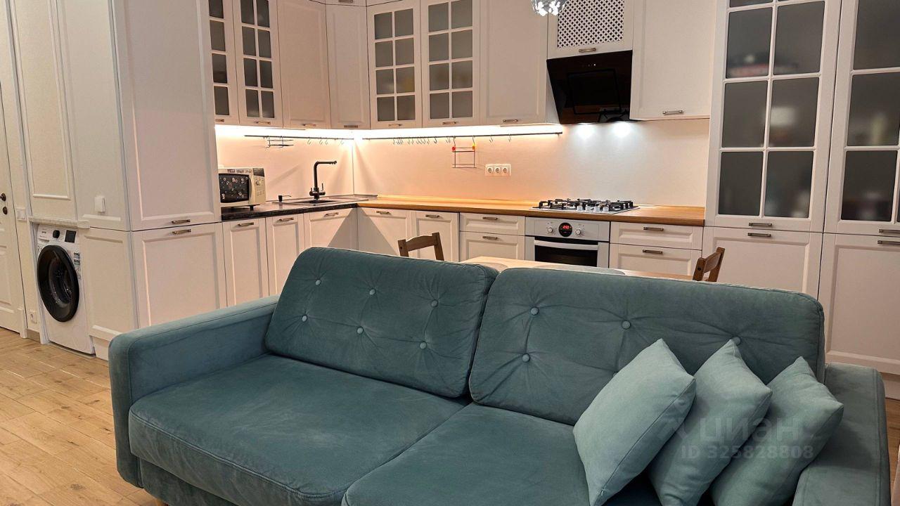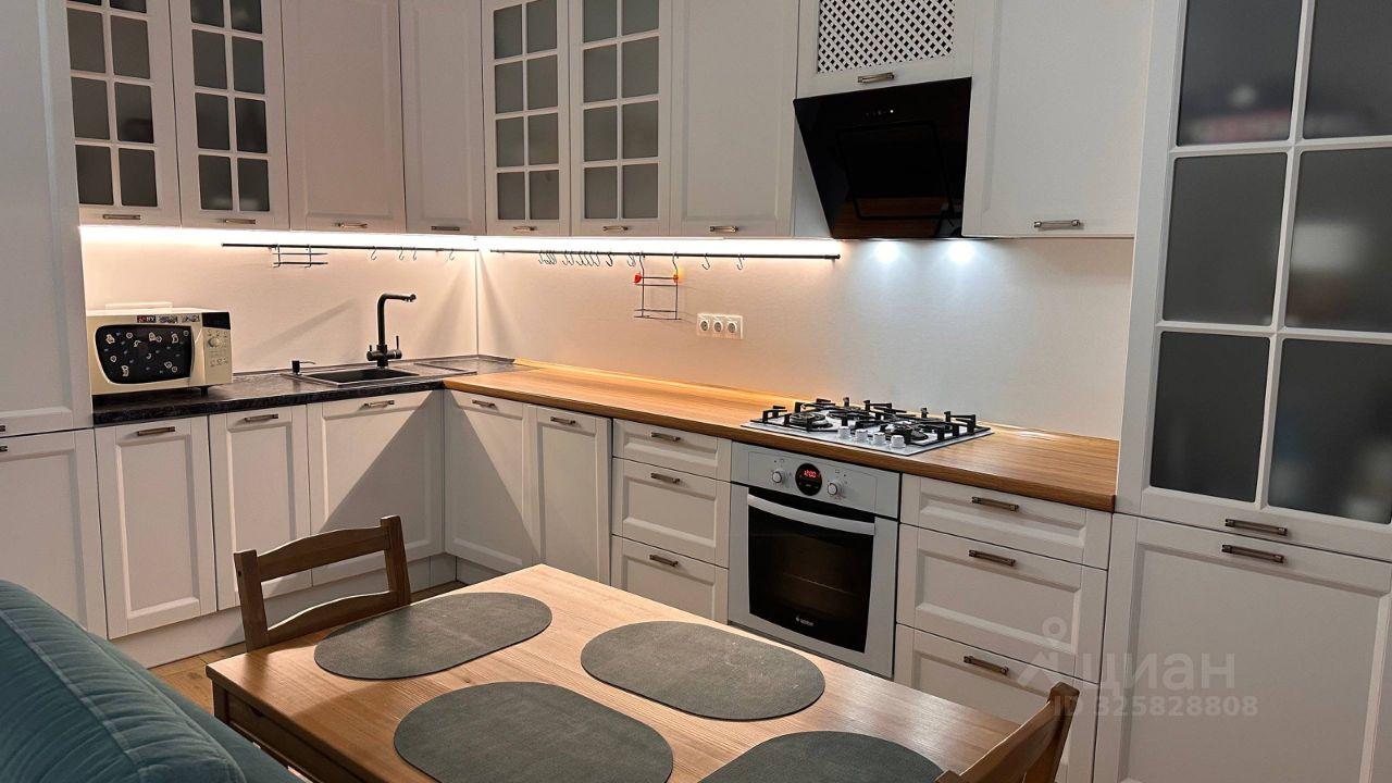 Квартира сдается впервые после ремонта, двуспальная кровать с новым ортопедическим матрасом Askona, удобным диваном и телевизором. В зоне кухни установлена современная плита, микроволновая печь и холодильник. Кухня совмещена с обеденной зоной, где размещён стильный обеденный стол на четыре персоны.