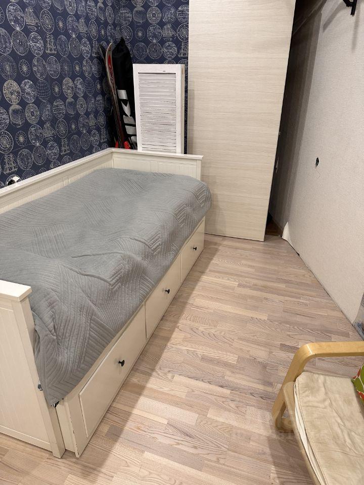 В комнате установлен смарт-телевизор, кровать ИКЕЯ 160*200, ортопедический матрас Аскона, огромный шкаф, тумба-IKEA, комод ИКЕЯ.