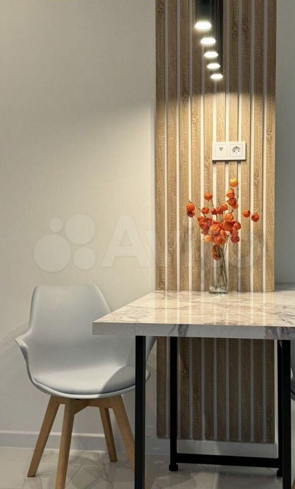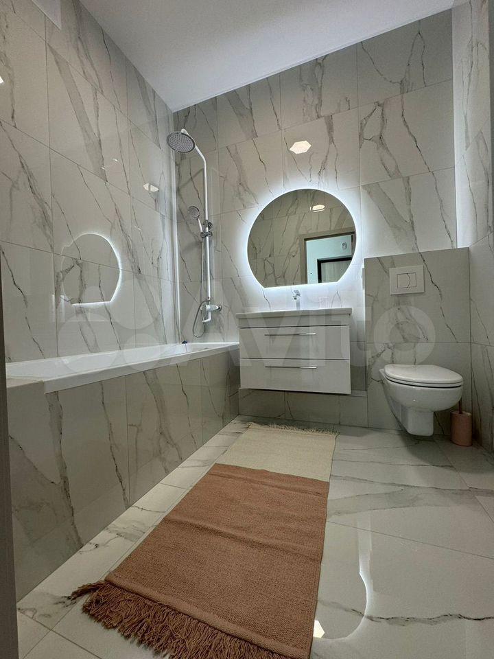 Заменена вся сантехника от застройщика, батарея, проведен кондиционер, на лоджии организована комфортная зона отдыха. Предусмотрено огромное количество мест хранения, вся мебель на заказ в потолок, встроенная техника, много контурного освещения, видео домофон. Идеальна для жизни одного или пары. Индукционная плита, встроенные стиральная и посудомоечная машина, встроенные микроволновка, духовка и холодильник, есть проточный водонагреватель и система протечки. Теплый пол на лоджии и в санузле. Есть телевизор и интернет (оплачен на 3 месяца, работает YouTube). Есть комплект новой посуды и нового постельного белья. В квартире есть робот-пылесос и ручной пылесос, утюг с беспроводным режимом, чайник.