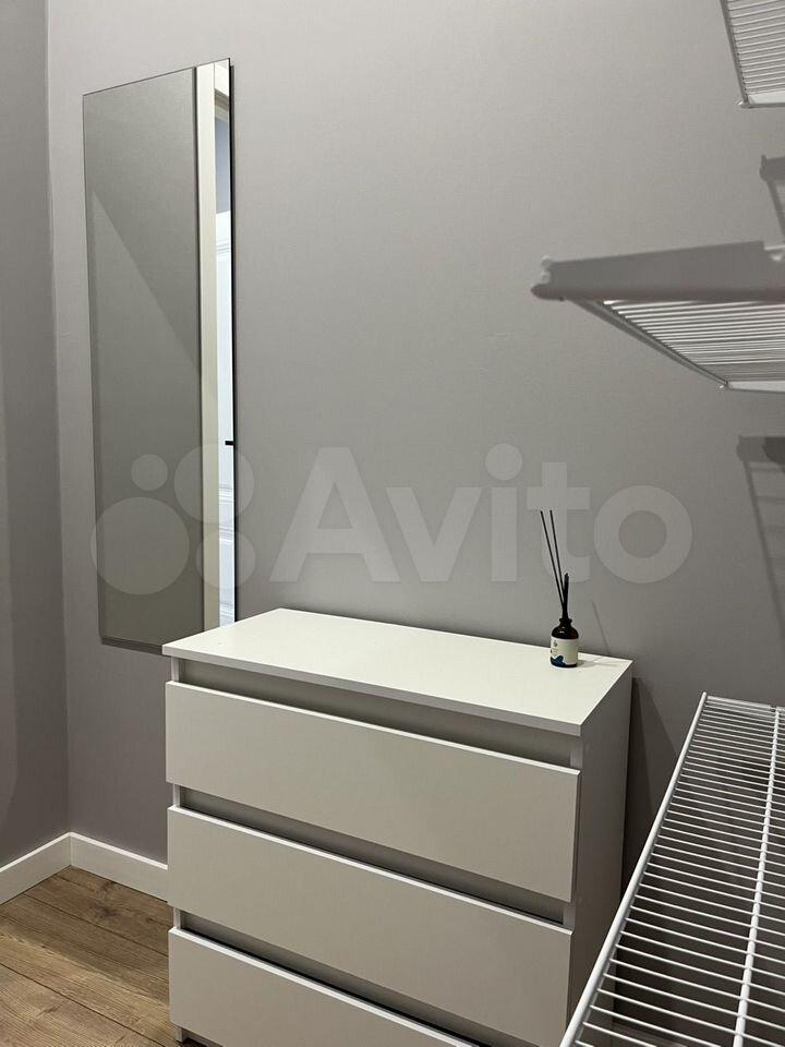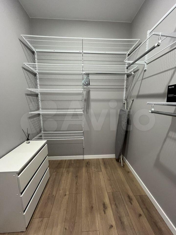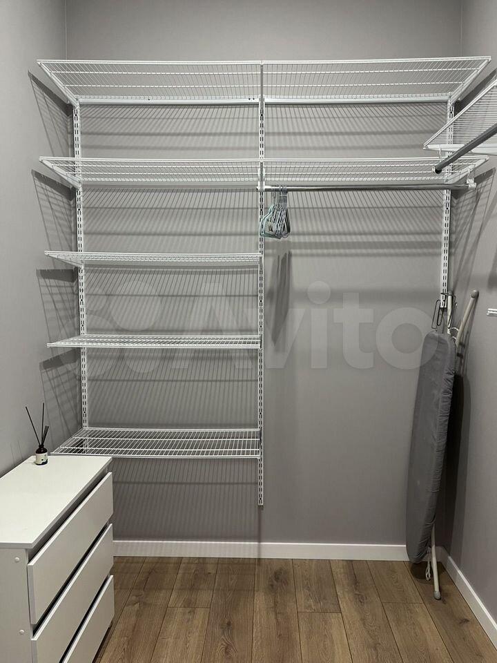 В квартире оборудовано много мест для хранения вещей: удобная гардеробная, большой платяной шкаф и 2 комода.