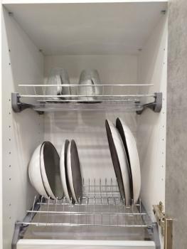 - эргономичная кухня, в которой есть ВСЁ: холодильник, плита,вытяжка, духовой шкаф, микроволновая печь, посудомойка, электрический чайник.