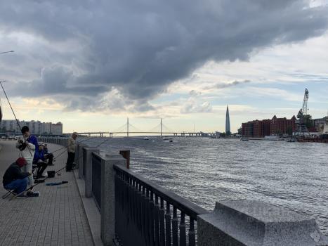 Из двора выход на набережную Малой Невы с видом на красивые закаты и Лахта-центр, стадион.