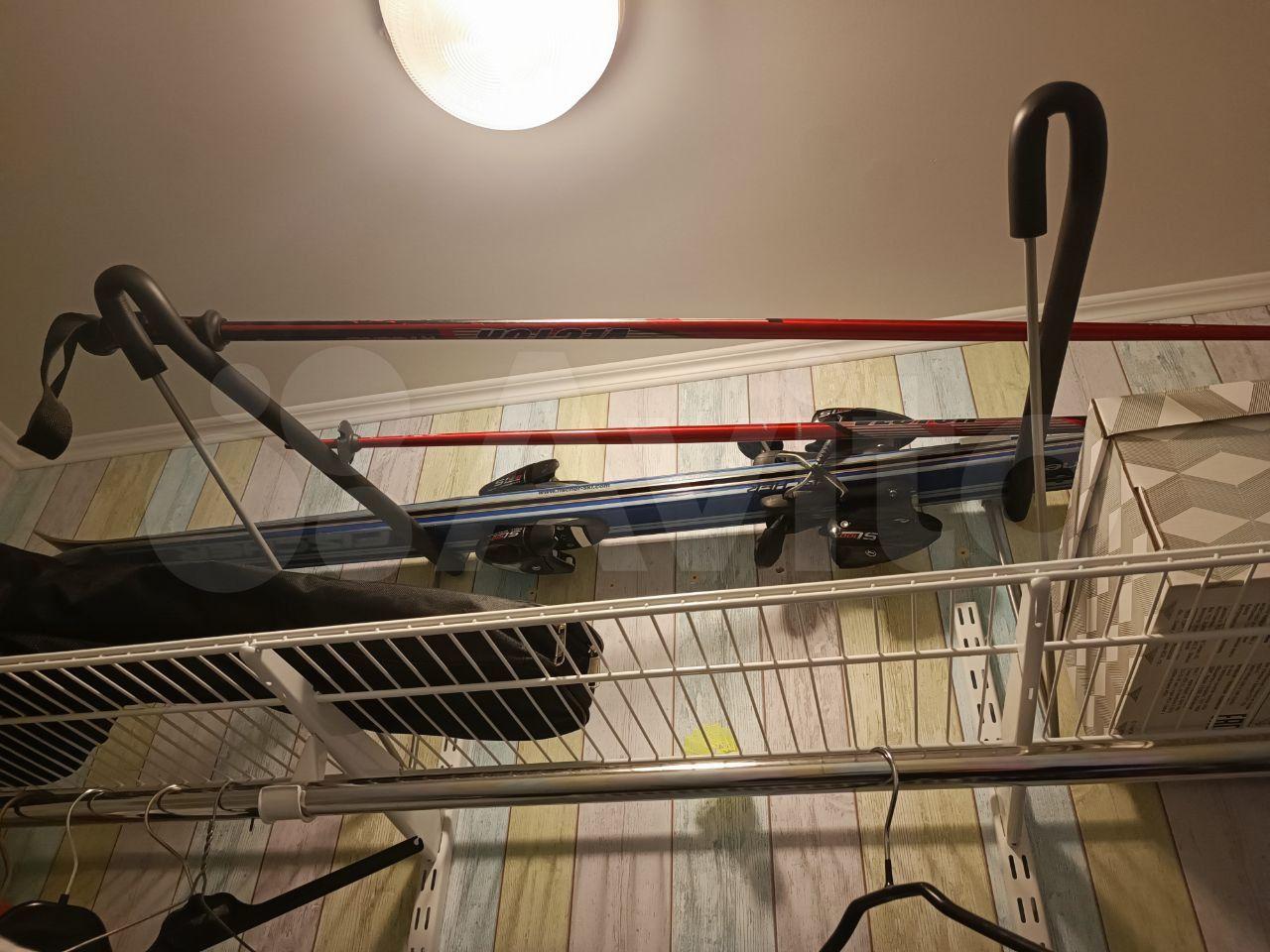 B гардеробной предусмотрены штанги на двух уровнях высоты. Есть крепление для лыж, сноубордов, сапов.