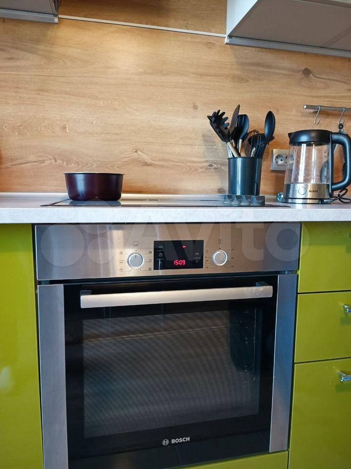 Есть посудомоечная машина, варочная поверхность, духовой шкаф, тихий холодильник, чайник, СВЧ, посуда. ТВ.
