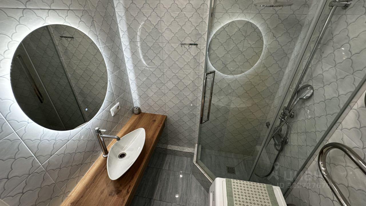 В квартире сделан современный дизайнерский ремонт. На кухне и в комнате есть вся необходимая мебель, а также бытовая техника: кондиционер, холодильник, посудомоечная машина, телевизор и стиральная машина. Ванная комната оборудована душевой кабиной, что делает её удобной и функциональной. Для вашего комфорта в квартире проведён высокоскоростной интернет.