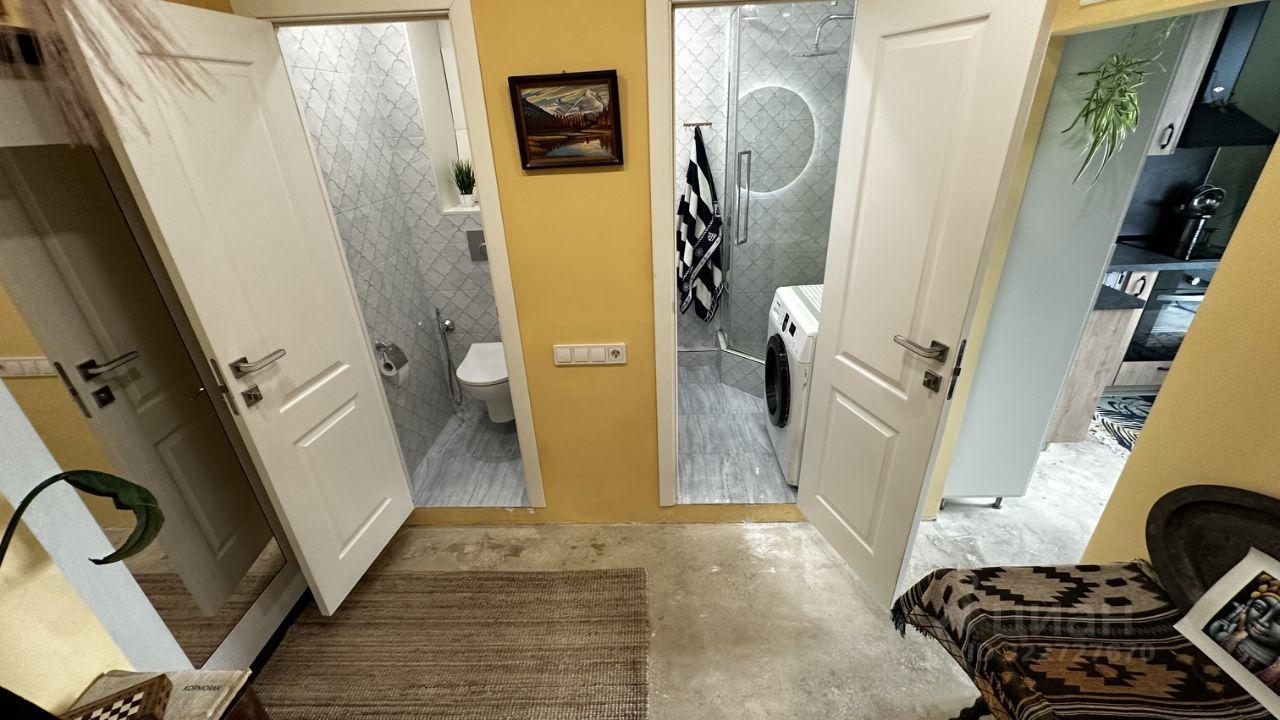 Сдаётся уютная студия с дизайнерским ремонтом на третьем этаже 11-этажного дома. Общая площадь апартаментов — 22,3 кв. м, с просторной кухней такой же площади. Высота потолков — 2,9 метра, окна студии выходят во двор, что обеспечивает тишину и уют.