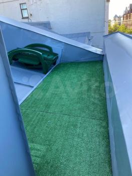 Есть свой выход на крышу. Где можно загорать, или просто наслаждаться звездным небом. Архитектурное убранство крыши устроено так что это безопасно. Квартира двухсторонняя. На окнах гостиной и кухни ( солнце с 14 часов) установлены ролеты с электроприводом. В Спальне есть кондиционер. Официально установлена эл. плита( во всех мансардах)