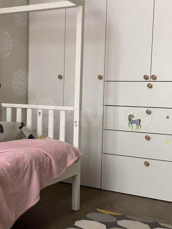 кровать с подъёмным механизмом ( дополнительное место для хранения вещей), шкаф, тумбочки, письменный стол, кухонный гарнитур, диван с ортопедическим основанием, стол-книжка, бытовая техника: холодильник, варочная панель, духовой шкаф и посудомойка, стиральная машина. Установлен фильтр на воду на кухне для питьевой воды.