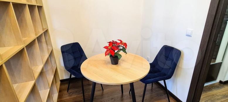 Удобная обеденная зона в виде стола и 2-х комфортных кресел.
