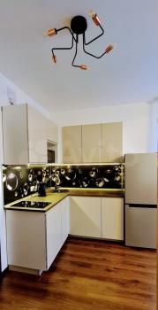 Раскладной диван (на 2 спальных места 200*160). Кухня, обеденная зона, комод. Посуда, столовые приборы. Все абсолютно новое.