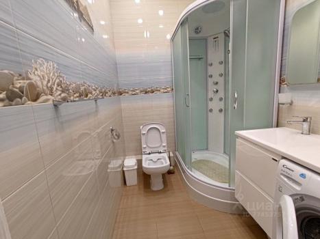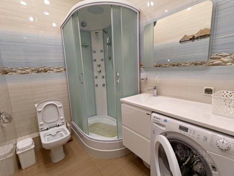 Большая просторная ванная комната , совмещенная с сан.узлом и оснащенная стиральной машиной.