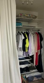 В квартире установлена гардеробная Elfa, есть полноценное рабочее и обеденное место.
