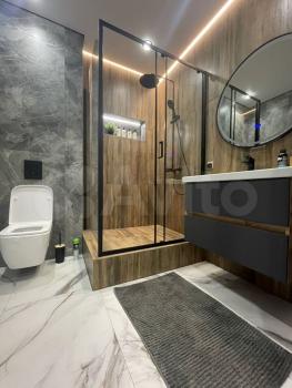 —современная ванная комната – бойлер, стиральная машина, душевая кабина 120*90 мм, электрический полотенцесушитель