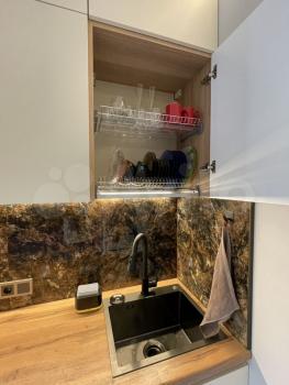 —полностью оборудованная кухня – духовой шкаф с функцией СВЧ, чайник, холодильник, посудомоечная машина, индукционная варочная панель, вытяжка