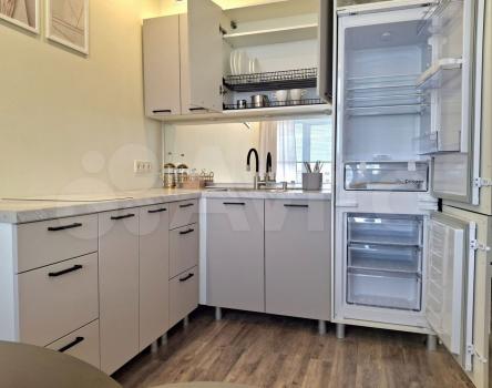Отличное оснащение квартиры - полноценная кухня с новой техникой, в том числе большой встроенный холодильник, стиральная-сушильная машина!