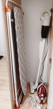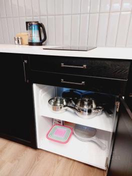 В студии имеется двуспальная кровать, кресло-кровать со спальным местом 60х170, шкаф, комод, телевизор Smart TV 43", Wi-Fi-роутер, сплит-система, душевая кабина с термостатическим смесителем, стиральная машина, утюг, фен, холодильник, индукционная варочная поверхность, микроволновая печь, посудомоечная машина, фильтр с трехступенчатой очисткой для питьевой воды, необходимая посуда, столовые приборы.