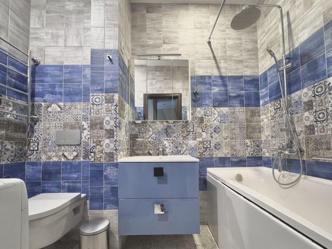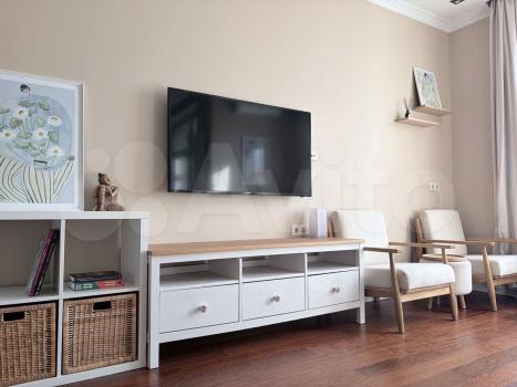 • Удобный диван-кровать • Стильная полка под телевизор •Обеденный стол и 2 стула • Кухонный гарнитур с плитой • Холодильник, микроволновка, чайник •Большой вместительный шкаф • Новая сантехника •Стиральная машина • Шторы блэкаут, тюль
