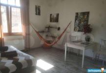 Сдаётся от собственника на длительный срок светлая, просторная и солнечная студия в доме бизнес-класса. Для хранения колясок и велосипедов есть отдельное помещение на первом этаже. Дом расположен на тихой улице, Из домашней техники - холодильник, стиральная машина, плита с духовкой, микроволновка, вытяжка, электрополотенцесушитель. Есть уютный гамак.