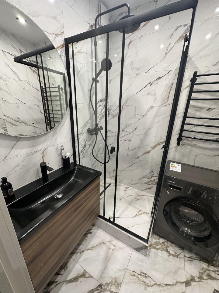Квартира с дизайнерским ремонтом, полностью меблирована и готова к комфортному проживанию. В просторной кухне есть вся необходимая мебель и техника, включая холодильник и посудомоечную машину. В гостиной установлен телевизор, а в спальне имеется удобная мебель для сна и отдыха. В ванной комнате вас ждет современная ванна, а стирка станет легким и приятным делом благодаря стиральной машине.